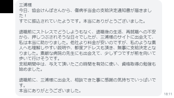 【受給画像あり】会社員の40代女性、つらい心身の不良が続き退職。手順をしっかり確認しながらサポートを利用し受給成功。