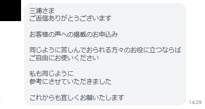 三浦さまの困った人へ寄り添ったサポートに感謝いたします