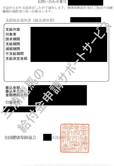 支給が決定しましたので、安心して休養をさせていただき、