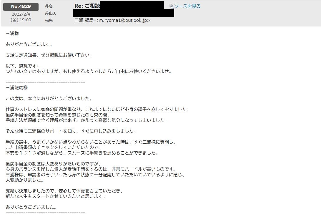そのような中、数あるサポートの中より当サポートを活用いただき、無事受給に至ることができました。