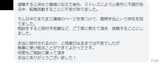 辛い状態の中でもひとつひとつ、いつ、何をすべきかを具体的に確認しながら確実に実行することできちんと受給することができました。