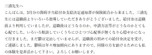 ご不安なことが多かったようですが、当サポートに相談いただきながら、無事に退職後も受給することができました。